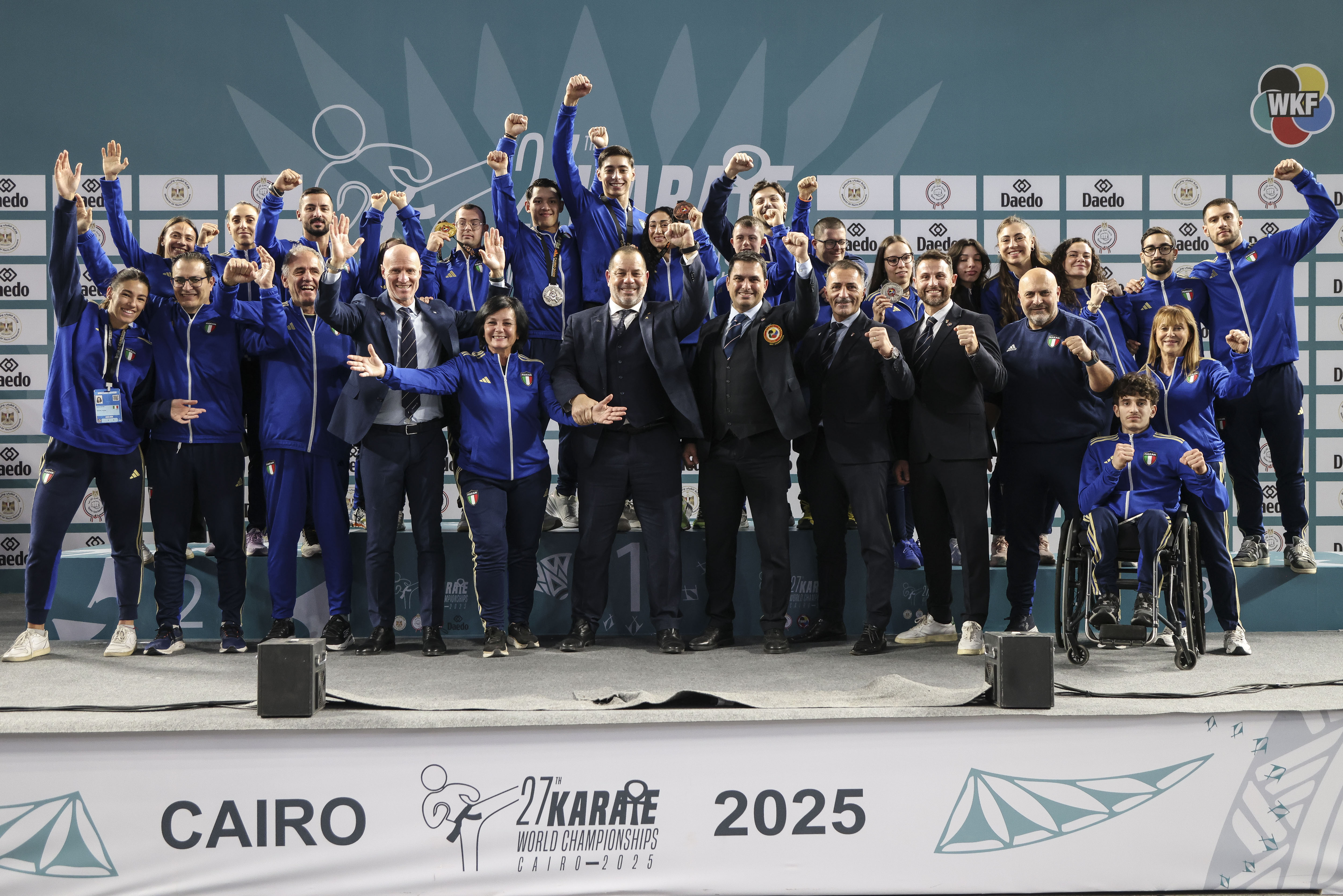 Roma, 1° dicembre 2025 – Si è chiusa ieri al Cairo un’edizione particolarmente attesa dei Campionati Mondiali di Karate e Parakarate, la prima a svolgersi con il nuovo formato che ha rivoluzionato la struttura del torneo: fuori le gare a squadre, 32 atleti qualificati per ciascuna delle 12 categorie individuali, una doppia fase con round robin iniziale ed eliminatorie a partire dagli ottavi. Quattro giornate di grande karate che hanno visto l’Italia protagonista in entrambi i settori, con un medagliere complessivo che ha consegnato al tricolore il secondo posto nella classifica per nazioni, dietro soltanto ai padroni di casa egiziani.