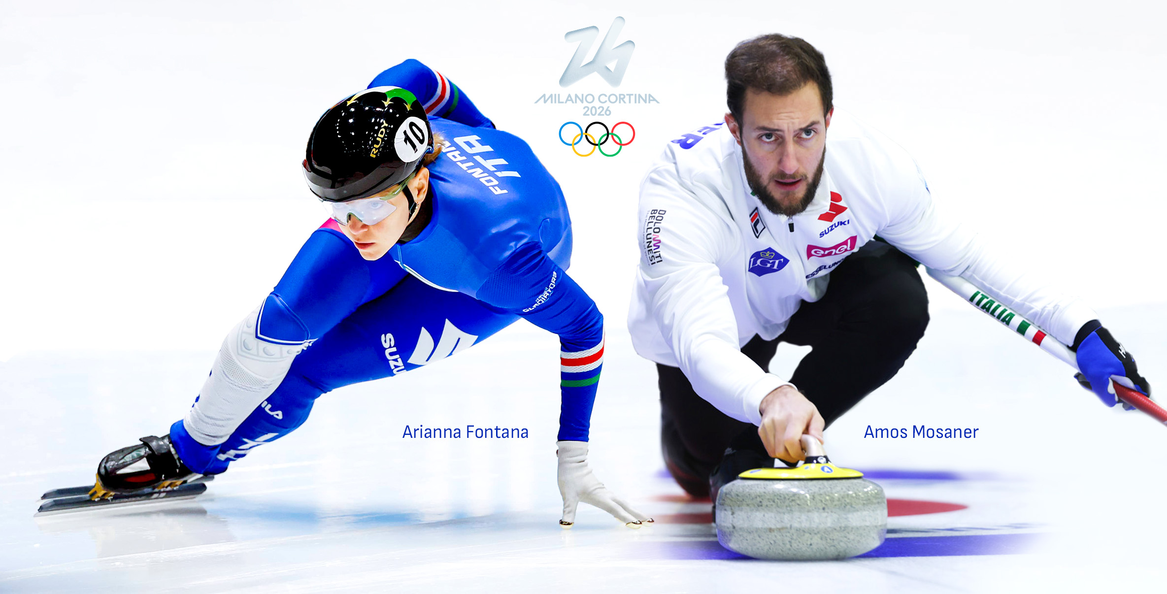 Amos Mosaner, campione olimpico del curling a Pechino 2022 e campione mondiale del doppio misto, e è il primo trentino a diventare alfiere azzurro mentre a Milano toccherà ad alla pluricampionessa olimpica dello short track Arianna Fontana, l’atleta italiana più medagliata nella storia delle Olimpiadi (11 podi), che alla sua sfilza dei record (con il bronzo a Torino 2006 a 15 anni e 10 mesi divenne la più giovane medagliata olimpica azzurra) aggiungerà quello di essere la prima italiana a sfilare due volte con il Tricolore. Fino ad oggi, infatti, ad aver avuto questo privilegio erano stati soltanto Ugo Frigerio (atletica), Edoardo Mangiarotti (scherma), Gustav Thoeni (sci alpino) e Paul Hildgartner (slittino).
