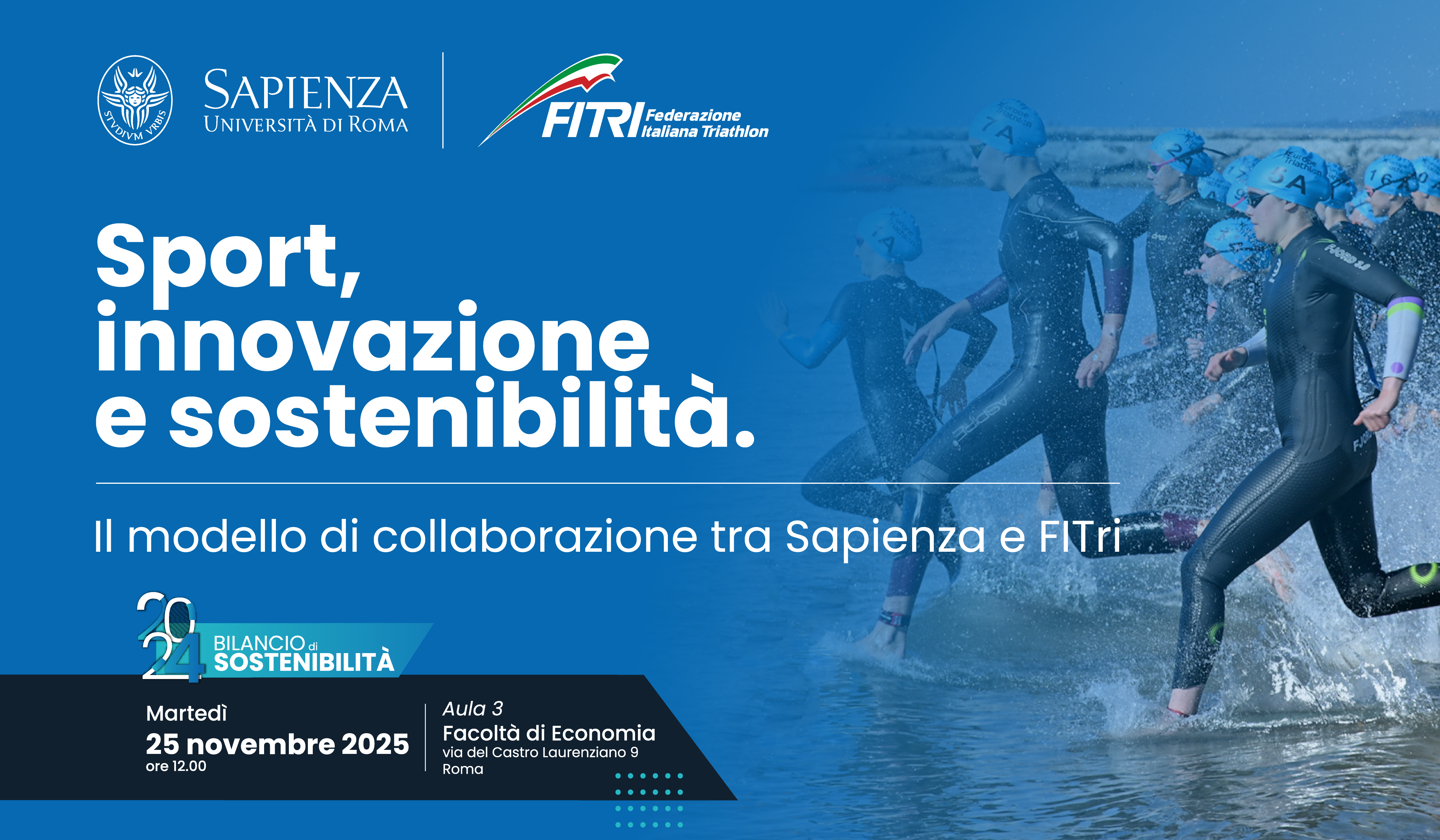Martedì 25 novembre, alle ore 12.00, presso l’Aula 3 della Facoltà di Economia della Sapienza Università di Roma (via del Castro Laurenziano 9), si terrà l’incontro “Sport, innovazione e sostenibilità . Il modello di collaborazione tra Sapienza e FITriâ€, un appuntamento che segna una tappa importante nel percorso di crescita, trasparenza e responsabilità della Federazione Italiana Triathlon.